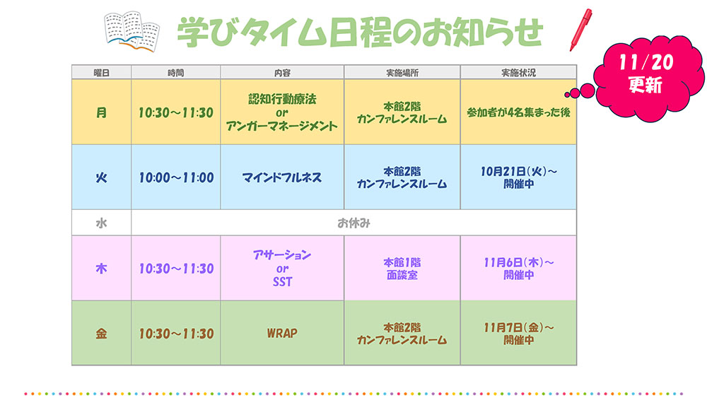 トップページ » お知らせ » 社会復帰事業部からのお知らせ(25年11月)